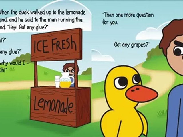 Bum bum bum ba-dum ba-dum A duck walked up to a lemonade stand And he said to the man running the stand Hey. 231 likes 4 were here. When Syo walked up to a corner store and she said to Komaru running the store Hey bomp bomp bomp Got any grapes Komaru said Oh.